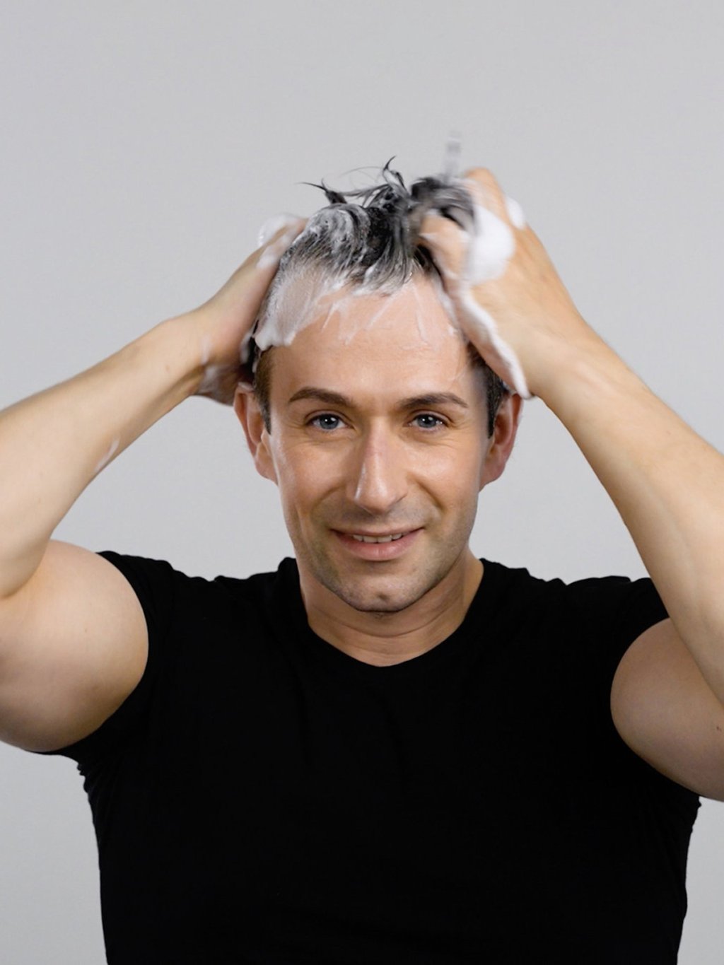 Šampónová kostka, která myje vlasy a navrací šedinám jejich přirozenou barvu.