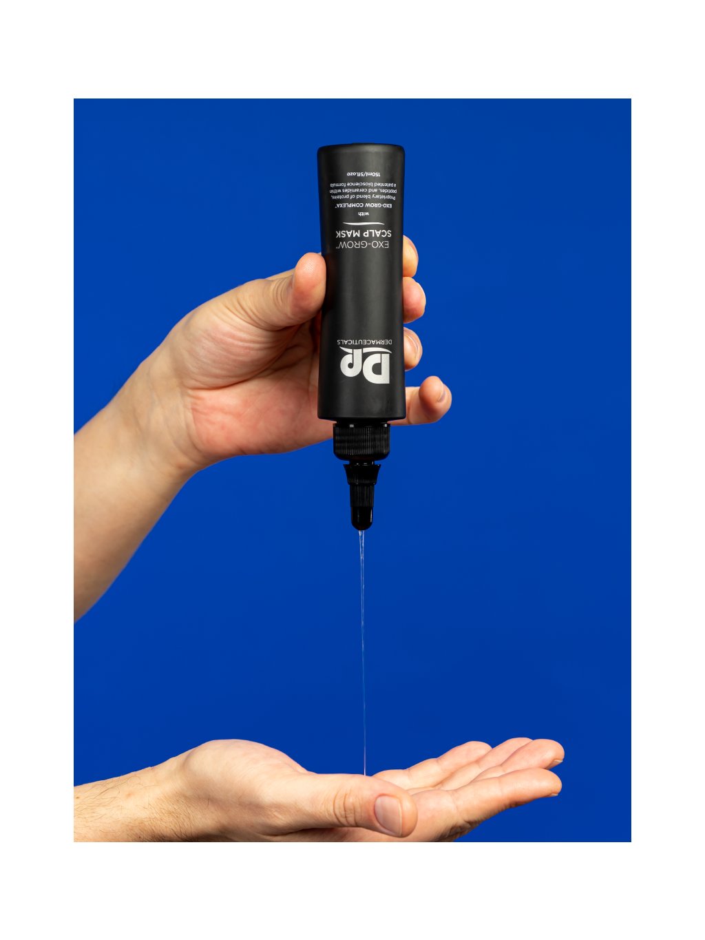 Pravidelné používání masky EXO-GROW SCALP MASK umožňuje lepší vstřebání vlasového tonika EXO-GROW™ HAIR TONIC nebo receptury aplikované pouze odborníky MG-EXO-GROW™ a zlepšuje účinnost aktivních látek v kombinaci s infuzními nebo omlazujícími postupy.