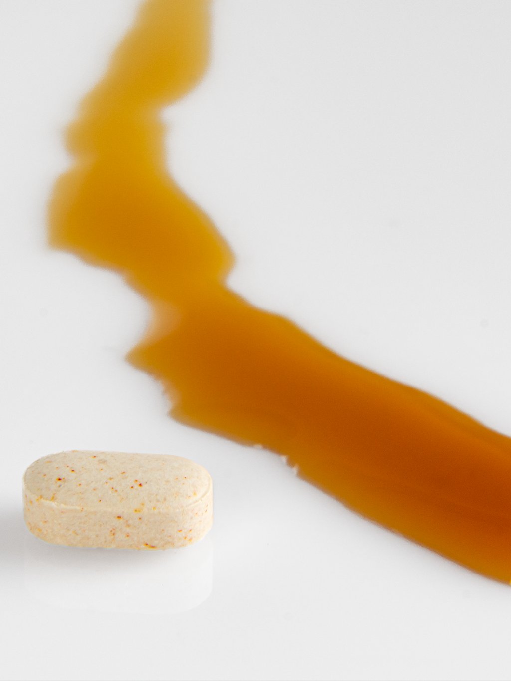 Velikost porce: 1 lahvička (27 ml nápoje + 1 tableta 500 mg)
