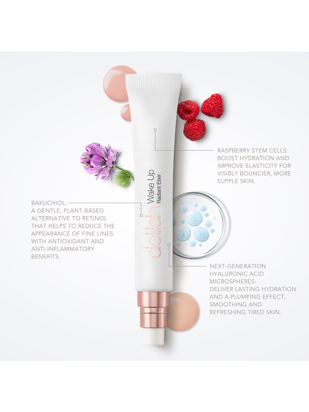 Wake Up Radiant Elixir je vyroben podle filozofie Delilah, že make-up by měl nejen vylepšit vzhled, ale také postupem času zlepšit stav tvojí pleti.